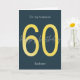 Personalized navy blue and gold 60th birthday card for husband, etc. The front features of the number 60 in gold with a happy birthday message. You will be able to easily personalize the front with his name, the inside card birthday message and the back with the year. This 60th birthday card would make a great birthday sake for him.