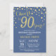 Blue and Gold 90th Birthday Diamond Invitation