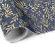 Blue and Gold Abstract Art Deco Leaves Pattern Wrapping Paper