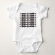 This baby bodysuit has an art deco design of triangles and diamonds that look like bowties in blue and gold.