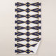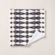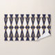 This towel set has an art deco design of triangles and diamonds that look like bowties in blue and gold.