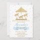 Blue and Gold Carousel Boy 1st Birthday Invitation