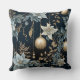 Blue and Gold Christmas Ornaments Poinsettias Throw Pillow