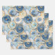 Blue and Gold Clock Pattern Wrapping Paper Sheets