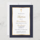 Blue and Gold Cross Elegant Script Baptism Invitation