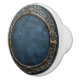 This Dark Academia drawer or door knob is in a blue suede look with a gold frame around the blue.