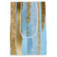 Modern Christmas gift bag done in graphics of a chic sky blue and gold tone foil and glitter striped pattern. Customize to add any text you want.