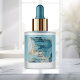 a luxury beauty label with a faux blue marble and faux gold foil background.