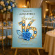 This exquisite Sweet 16 foam board is a sparkling jewel, featuring a magnificent "Sweet 16" emblazoned in glittering gold, each numeral studded with brilliant blue and golden yellow gemstones. A captivating sapphire blue rose, meticulously crafted with delicate leaves, blooms gracefully at the base, adding a touch of sophisticated elegance. The serene dusty blue background provides a subtle yet rich canvas, making the golden script and dazzling gemstones truly pop, creating an opulent feel that whispers of glamour. This luxurious design is the perfect shimmering prelude to a milestone celebration.