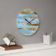 Glamorous wall clock done in a blue and gold foil and glitter looking abstract stripe pattern. Blue numbers for the hours 12, 3, 6 and 9 decorate the perimeter of the clock. Customize to add any text you want.