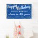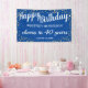 Personalized adult birthday party banner featuring a deep blue background that can be changed to any color, a scattering of party gold confetti glitter, and a cheers to (age) years celebration template that is easy to personalize.