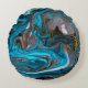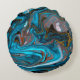 Blue and gold marbling pattern. Golden marble liqu Round Pillow