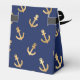 Favor box featuring a faux gold foil anchor pattern against a navy/royal blue background.