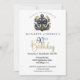 Blue and Gold Nautical Bow Anchor 90th Birthday Invitation
