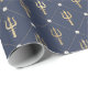 Blue and Gold Nautical Trident Pattern Wrapping Paper