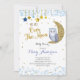 Blue and Gold Over the Moon Owl Baby Shower Invitation