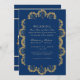 Plain white envelopes are included with paper invitations and will come to fit the invitation size you select. If you don’t need the envelopes, you may choose to not receive them by selecting the dropdown below "Envelopes" and choosing "None." If you’d like to have a design on your envelopes, you can browse all of these available envelopes to find the design that complements your Blue And Gold Regal Indian Style Wedding Invitation.
