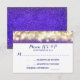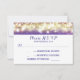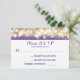 blue and gold wedding RSVP card with hanging string lights and glitter shimmer texture background (not actual glitter).