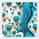 Pretty abstract ai art with blue and gold hues of water cascading down in a waterfall surrounded by blue and gold bubbles. This abstract art has a pour painting look with blending colors and cells.