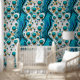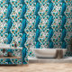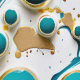 Blue and Gold Water Cascade and Bubbles Wallpaper