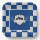 Blue and gray checkered and motorcycle personalized paper plate. Checkout the rest of the collection.