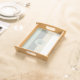 A cool and refreshing color palette of dusty blue, medium gray, fawn gray and white add minimalist appeal to your home. A round matching frame surrounds a large monogram that you can edit with your desired initial. If you prefer the tray without the monogram, you can customize this item and delete the round frame and text.