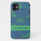 A stylish, customizable Case-Mate 'Barely There' to protect your iPhone 5 with an abstract blue and green pattern reminiscent of Bubbles, from a silkscreen print by Judy Adamson. There is a green band with blue lettering for you to personalize with your name or initials.