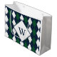 Blue and Green Argyle Monogrammed Large Gift Bag