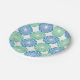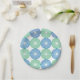 Blue and green circular pattern on white background paper plate