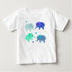 Cute baby boy's tee with adorable graphics of blue, turquoise, and mint green patterned elephants and colorful hearts. Customize to add you own text.