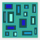 Light Blue and mint green rectangles and squares on green background. Simple and colorful pattern