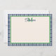 Blue and Green Gingham Plaid Tartan Monogram Note Card
