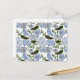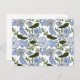 Blue and Green Hand Drawn Floral Block Print Postcard