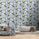 Blue and Green Hand Drawn Floral Block Print Wallpaper