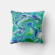 Blue and Green Marble Fluid Art Abstract Throw Pillow