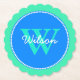 Pretty blue and green scalloped pulp board paper coasters, with a white polka dot circle accent and custom monogram and text. Personalize the green one letter monogram and the white script text to suit your needs. Great for anytime use and makes a nice gift idea.