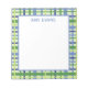 Blue and green plaid adorns this notepad for all your notes and list-making. Art by Designer Becky Volk