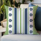 Blue and Green Stripes Floral Throw Pillow
