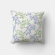 Blue and Green Watercolor Leaves Pattern Throw Pillow