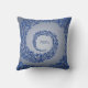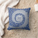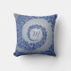 Blue and Grey Damask Monogram Throw Pillow