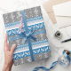 Blue and Grey Norwegian Alpine Deer Pattern Wrapping Paper