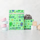 Birthday gift wrap with lime green balloons, blue cupcakes and polka dots, boy's birthday gift wrap.