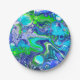 Blue and green swirls abstract marble modern art fun birthday Party plates.