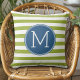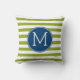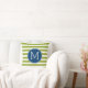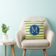 Blue and Lime Striped Pattern Green Monogram Throw Pillow