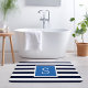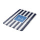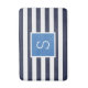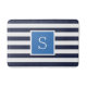 Custom monogrammed bath mat with a preppy stripe pattern in navy, blue and white colors. Personalize it with your monogram initial in a square frame. Use the design tools to choose any background colors, edit the text fonts and colors and add your own photos to create a one of a kind design to match any bathroom decor.
