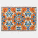 Enjoy this creative abstract symmetrical, mandala design with blue and orange colors.