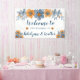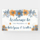 Welcome guests to your wedding with this custom printed wedding banner. It features a watercolor style floral illustration in softer muted shades of blue and orange, making it perfect for fall or autumn weddings and special events. Use the template fields to easily personalize these banners with your information. Have more information you need to include? Select the CUSTOMIZE option to add additional text to these wedding banners.