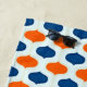 Unique vintage-style pattern in blue and orange for that groovy, mid-century look.