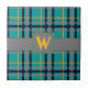A rich turquoise base is crisscrossed by bands of deep navy blue, solid gray, and bright orange in this plaid that combines trendy colors and contrasts with a classic and cozy pattern. This tile can be framed to create a trivet or placed inside a wooden gift box lid. Tiles without a frame will also fit inside the large gift box to create a matching set. Customize the monogram with your initial to make it your own.