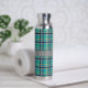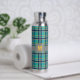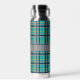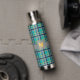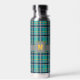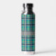 A rich turquoise base is crisscrossed by bands of deep navy blue, solid gray, and bright orange in this plaid that combines trendy colors and contrasts with a classic and cozy pattern. Customize the monogram with your initial to create a water bottle that is uniquely yours.